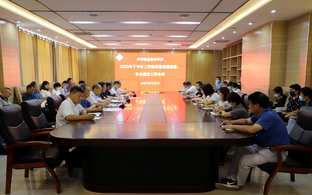8月25日下午,高等职业技术学院在综合楼十楼会议室召开了2022年下半年工作部署暨疫情防控、安全稳定工作会议。学院全体领导班子成员出席会议。全院各职能部门和各系(部)负责人、辅导员等参加了会议。会议由学院党委副书记申长奎主持。