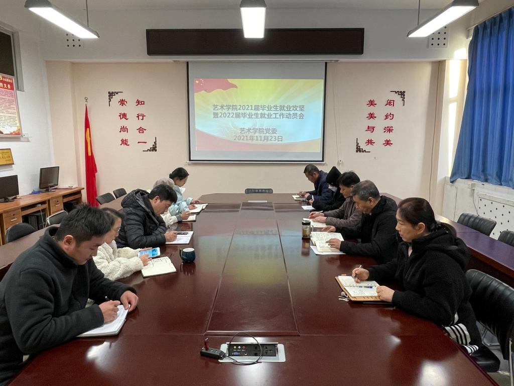 11月23日,艺术学院在11#208会议室召开2021届毕业生就业攻坚暨2022届毕业生就业工作动员会,艺术学院党政班子、辅导员10余人参加了会议。
