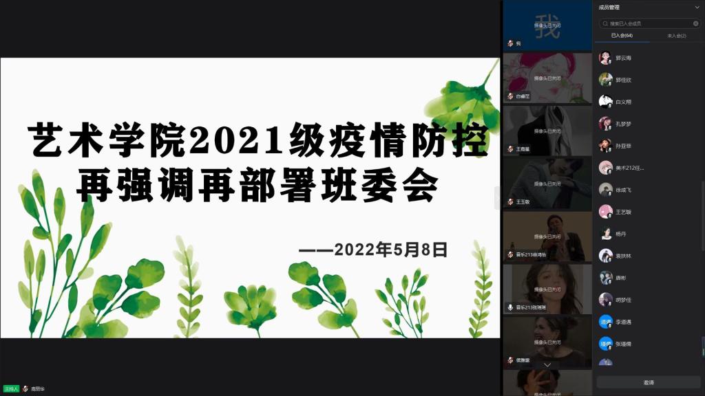 通过此次线上主题会议,进一步增强了疫情防控下同学们的安全防范意识,为日后艺术学院疫情防控工作和教育教学工作的正常进行奠定了良好的基础。