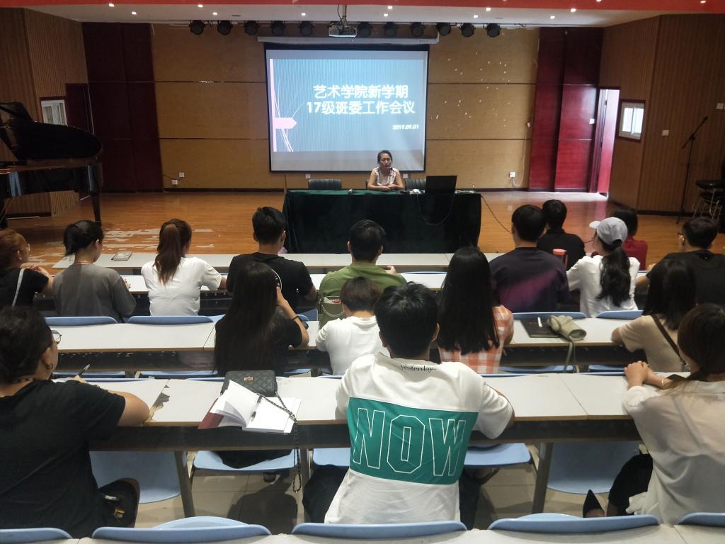 9月1日上午,艺术学院在一楼音乐厅举行“艺术学院2019年青马工程暨学生干部培训”,艺术学院党委副书记徐小玉做了《如何成为一名优秀的学生干部》的讲座,对全院学生干部150余人进行了增强学生干部责任和担当意识的专题培训;随后,两位辅导员老师相继组织召开了新学期各年级班委会议,对新学期的学习、工作及相关活动提出要求;下午,艺术学院党委副书记徐小玉、副院长张思镜、全体辅导员及各专业负责教师一起走访了艺术学院实验室和专业教室,对教室的卫生状况和教学用具的使用情况逐一进行询问排查,对出现的问题现场提出解决方案,确保第二天教学活动顺利开展;随后,老师们还走访了部分学生宿舍,叮嘱同学们尽快调整状态,以崭新的面貌迎接新学期的学习。