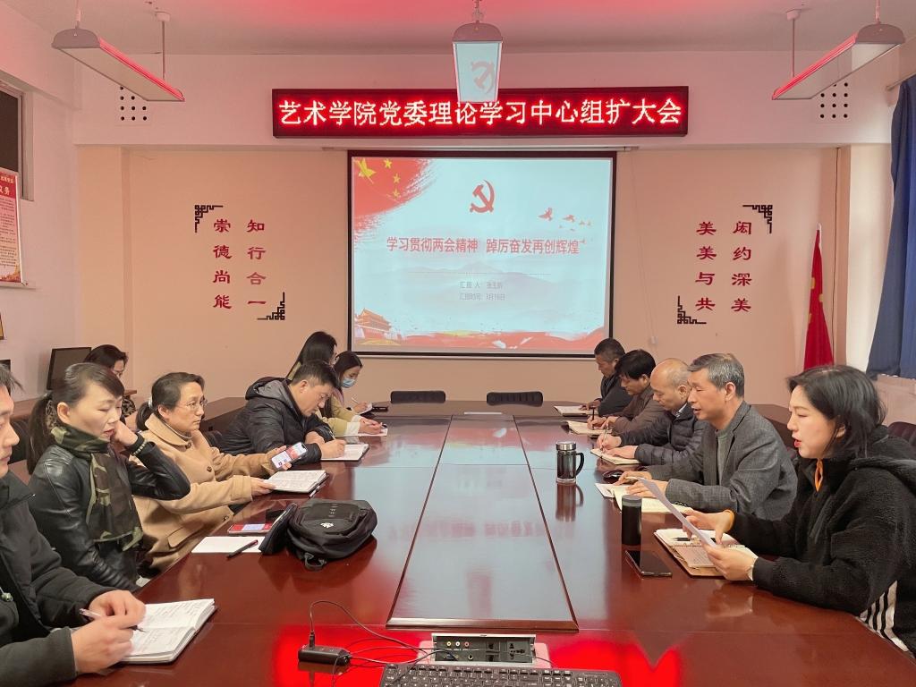 就艺术学院如何深入学习贯彻党的二十届二中全会和全国两会精神,张玉新强调,一是认真学习和深刻理解党的二十届二中全会和全国两会精神;二是全面贯彻党的二十届二中全会和全国两会精神,向着实现中国式现代化奋楫前行;三是全面落实立德树人根本任务,汇聚起全院师生在新征程中书写新华章、再创新辉煌。