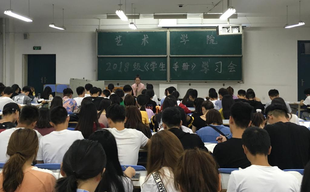 自新生入校后,艺术学院多次组织学习《大学生宗教知识手册》和《学生手册》。各新生代班、学生干部带头学习领会相关规章制度精神,分组给新生讲解,采取问答、考试等多种形式加强新生对校规校纪的理解及记忆,通过校规校纪的学习,帮助新生端正态度,推进角色转变。