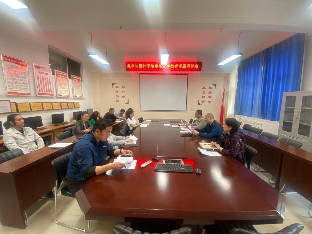 为深入贯彻落实党的二十大精神和习近平总书记关于严明党的纪律和规矩的重要论述,全面加强党的纪律建设,5月11日,美术与设计学院在11208会议室召开纪律教育专题交流研讨会,美术与设计学院党委书记张新词、院长雷保杰、党委副书记徐小玉、各专业建设责任人、辅导员共10余人参加了会议。