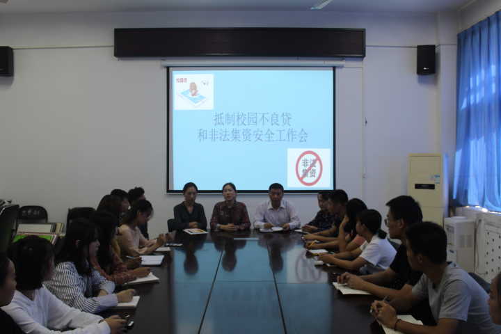 徐书记首先向大家传达了学校关于加强抵制校园不良贷和非法集资风险警示教育工作的相关会议精神,又向大家分析了近年来校园内发生的多起不良贷的具体案例及学生中目前存在的一些非法集资不良倾向,最后张书记强调同学们要树立正确的消费观念,深刻认识不良贷和非法集资的危害,并积极采取防范措施。