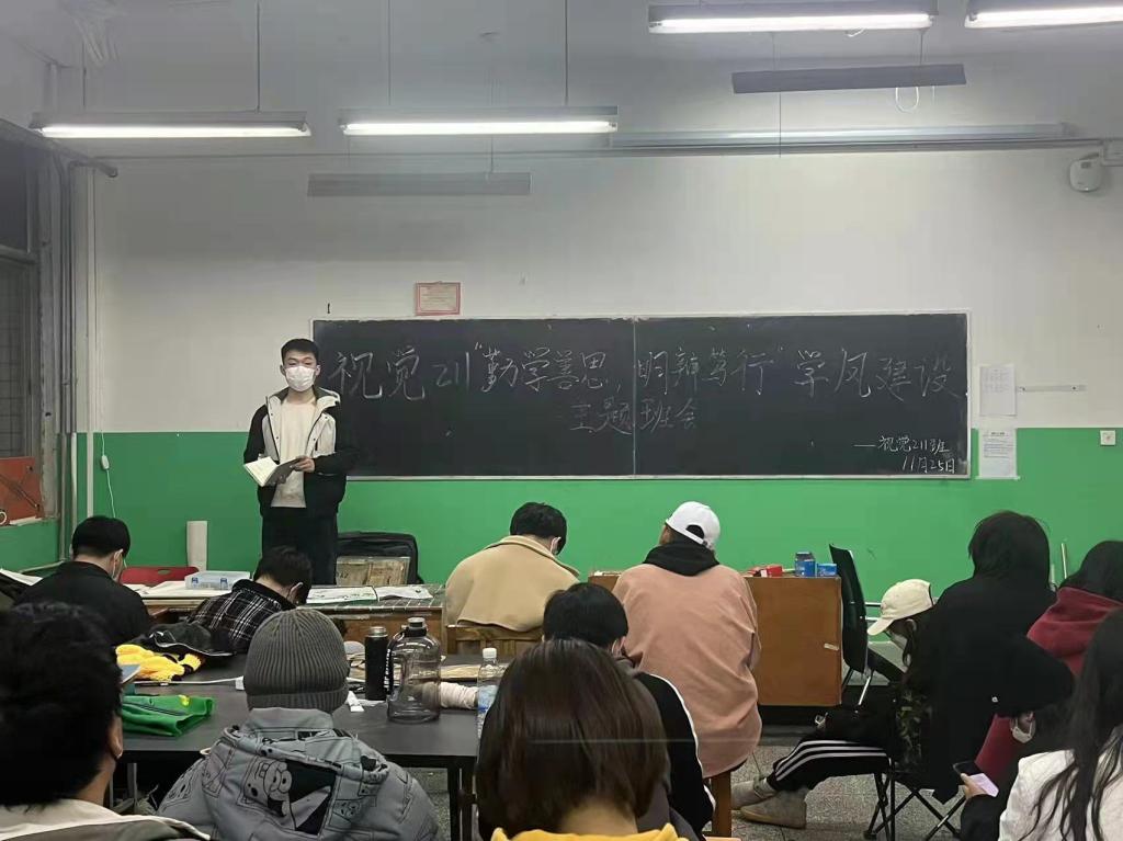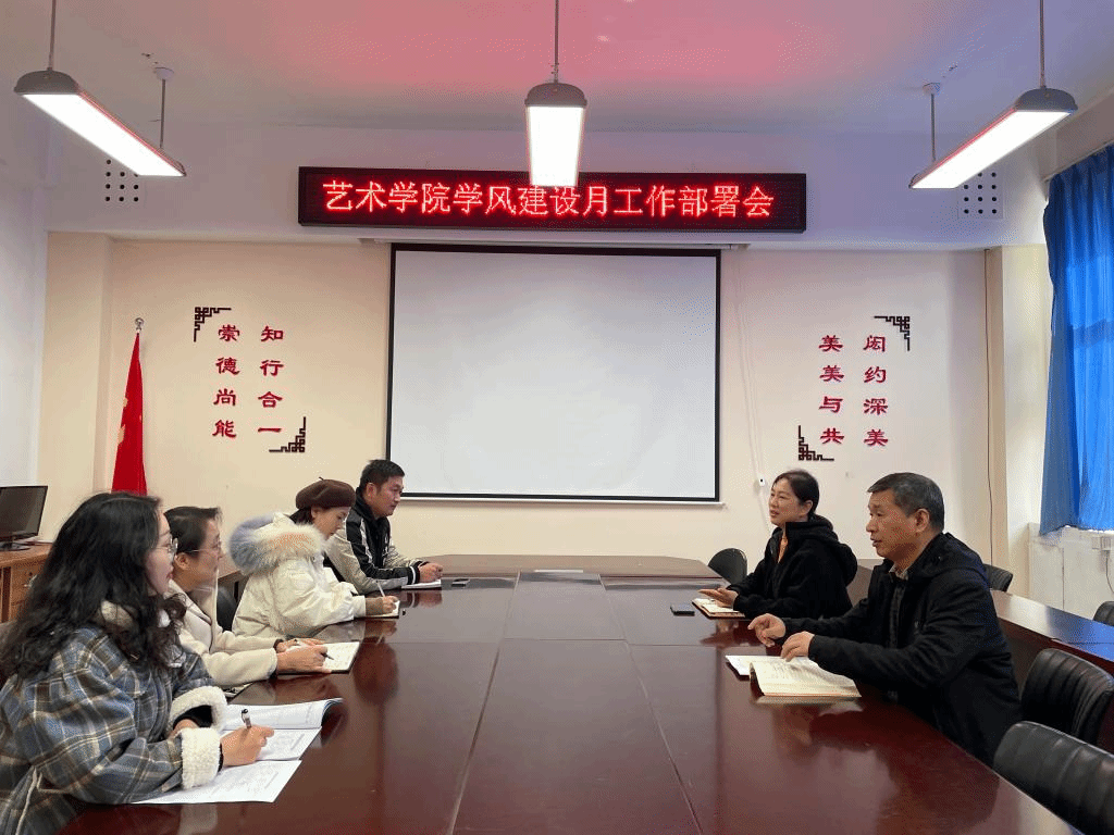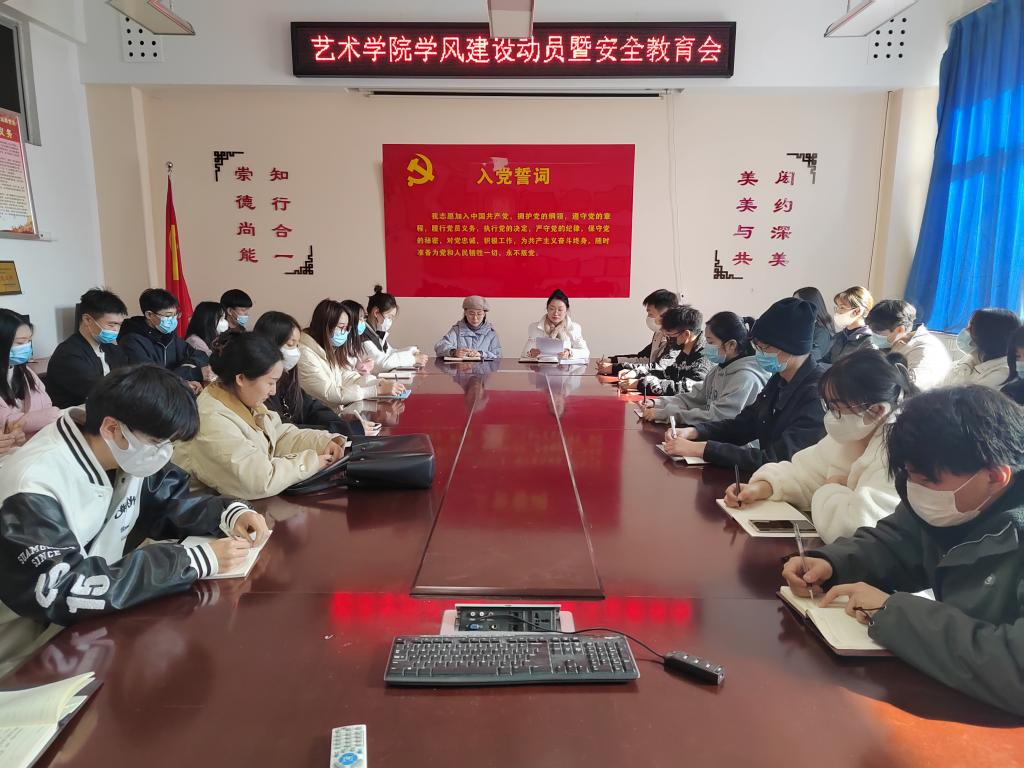 在辅导员例会上,徐小玉传达了学生处关于2021年学风建设月活动的会议精神,各年级辅导员根据各专业学生教育管理重点和学生特点,共同商讨、研究制定出了符合艺术学院特色的具体实施方案;在动员大会上,张腾玮传达了《关于开展2021年学风建设月活动的通知》文件精神,杨丹详细安排了艺术学院各年级各班的学风建设月具体活动安排,学院将通过召开学生干部动员会、学风建设主题班会,倡议书签字,成立学习小组,开展学习经验交流会,统一制作“班级专业教室贴”和“班级学生人员名单贴”,评选“学习标兵”等丰富多彩的活动,压实责任,分层级管理,加大督查惩处等方式,加强学风引领。会议还强调了防范电信网络诈骗和宿舍用电相关事宜,提醒同学们筑牢安全防线,扎实做好安全教育。