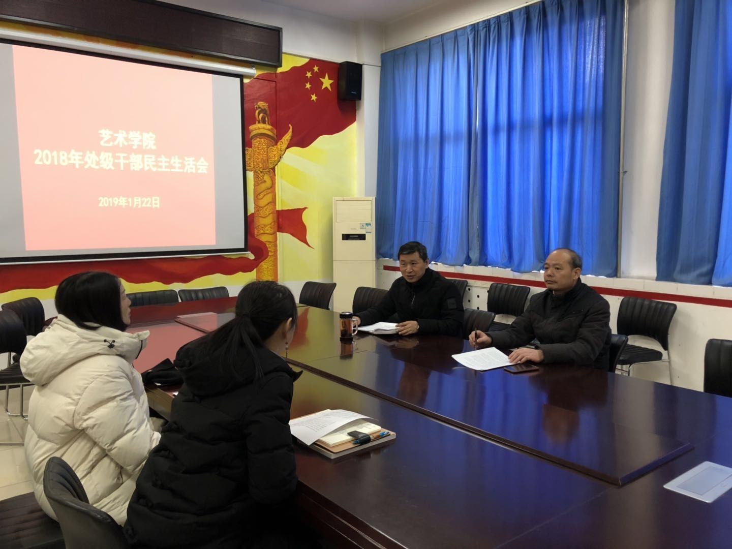 为进一步加强自身建设,以新气象新担当新作为落实好党中央各项决策部署,1月22日上午,按照学校《认真开好处级以上党员领导干部2018年度民主生活会的通知》精神,艺术学院召开了处级干部2018年度民主生活会。会议由艺术学院党委书记张玉新同志主持,艺术学院领导班子成员参加了会议。