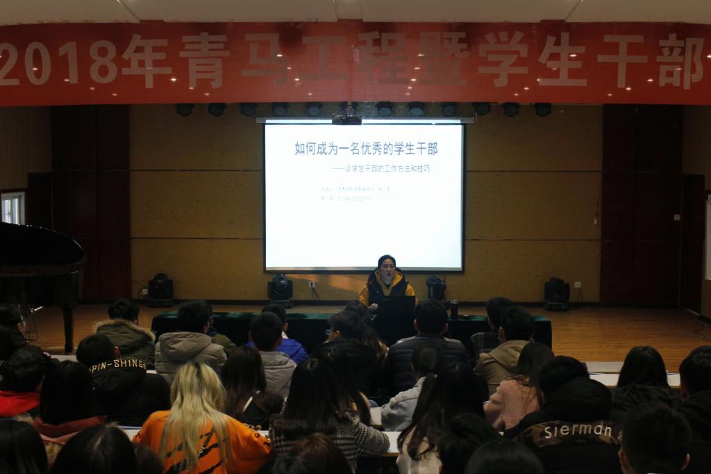 本次培训由党委副书记徐小玉主讲,以《如何成为一名优秀的学生干部》为题进行了四个方面的交流:学生干部和普通学生的区别;学生干部应该做什么;怎样做才算是一名优秀的学生干部;学生工作的一些方法和技巧。徐书记指出,学生干部比普通学生多一重政治身份,学生干部更应该在老师的指导下带领同学们进行自我教育,协助老师维护正常的教学和生活秩序,在为同学们服务、自我锻炼的基础上更要加强政治理论素质、思想道德素质,提高综合学习能力,锻炼出一个健康的身体和心理素质。徐书记还通过具体生动的事例,为在场的学生干部们传授了工作中的一些方法和技巧,在场的同学们认真聆听并做了笔记,纷纷表示此次培训受益匪浅。