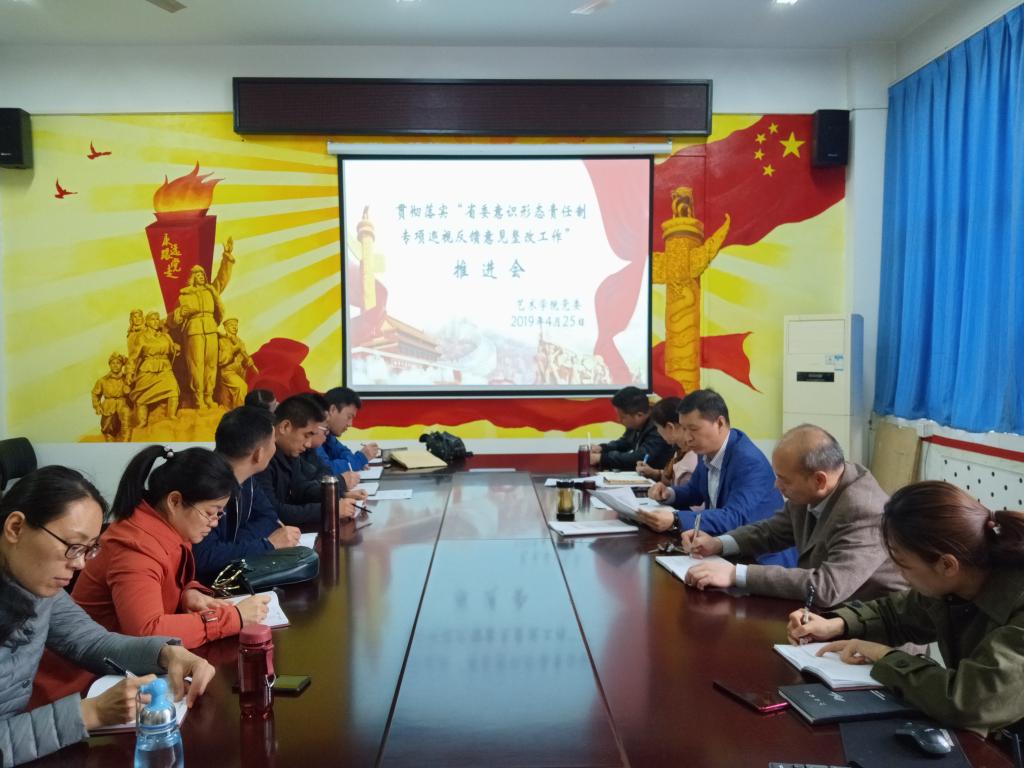 4月25日下午,艺术学院贯彻落实“省委意识形态责任制专项巡视反馈意见整改工作”推进会在11号楼208会议室召开。艺术学院党委委员、党支部书记、办公室主任、研究生秘书、科研秘书、教学秘书及系主任等20余人参加了会议。会议由艺术学院党委书记张玉新同志主持。