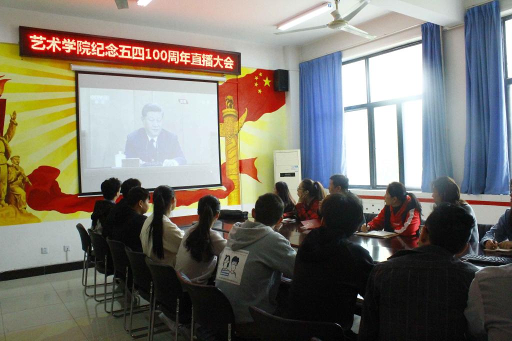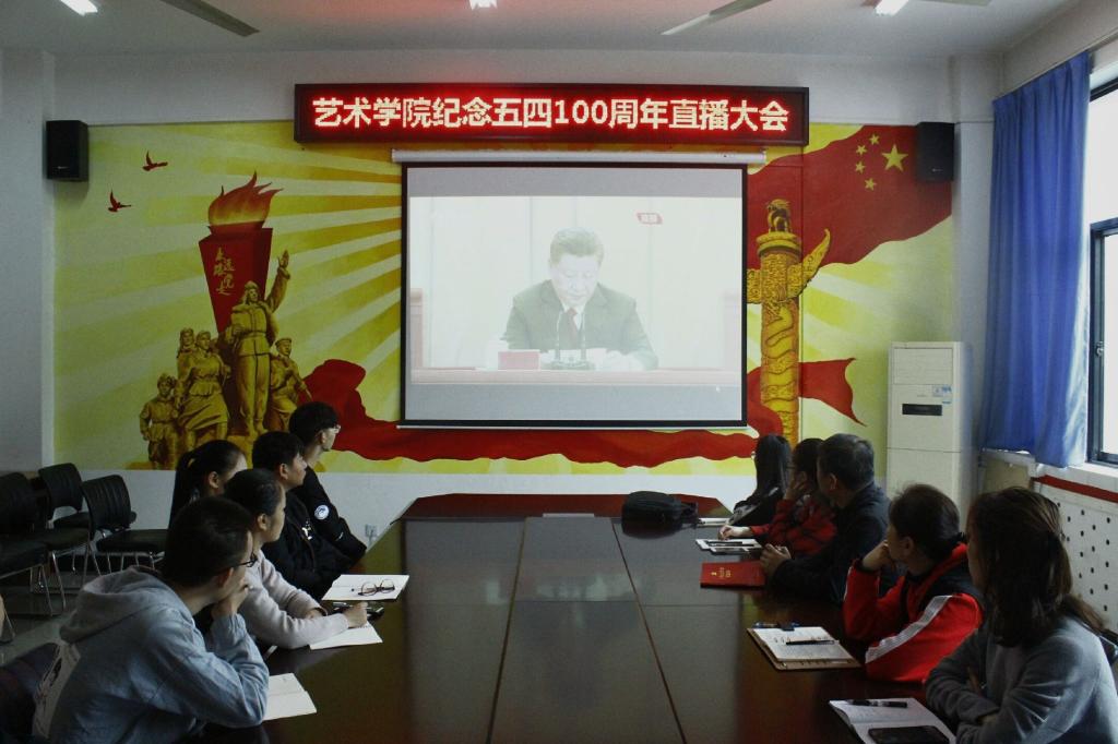 讲话中,习近平总书记高度评价了五四运动的历史意义,对当代青年深情寄语,要求各级部门要用极大力量做好青年工作,党旗所指就是团旗所向,希望新时代中国青年积极拥抱新时代、奋进新时代,让青春在为祖国、为人民、为民族、为人类的奉献中焕发出更加绚丽的光彩!在场师生观看过后纷纷表示深受鼓舞、深受教育、深受启发并展开热议:艺术学院党委书记张玉新表示:以“爱国、进步、民主、科学”为内涵的五四精神,历经一代代人的传承、发扬与积淀,早已融入民族的血液,成为民族复兴之路上的重要精神支柱。奋斗是青春的底色,行动是最好传承,而对五四运动的最好纪念,就是在党的领导下,以执着的信念、优良的品德、丰富的知识、过硬的本领肩负起历史赋予的重任,希望同学们能够牢记五四运动,弘扬五四精神,以责任为青春起稿,以奋斗为青春铺色,以担当充实青春内核,以奉献成就青春无悔。党委副书记徐小玉发言道,作为思想政治教育工作者,要提升做好青年工作的本领,就要掌握新时代青年运动的规律,青年成长成才规律,要加强对五四运动精神的研究和传承。在新时代教育和引导广大青年学生学习传承五四运动精神,就是要加强对广大青年学生的政治引领,引导广大青年学生自觉坚持党的领导,永远听党的话跟党走。学生团员张宇麟发言说,作为当代青年大学生,除了要争做新时代的奋斗者,敢于做梦、勇于试错,在日常学习生活中努力提高个人综合素质,增强品德修养;更要做新时代的建功者,坚定理想信念,坚持党的领导,不忘初心,牢记使命,将个人的追求融入民族的共同理想,始终奋斗在实现中华民族伟大复兴的第一线。