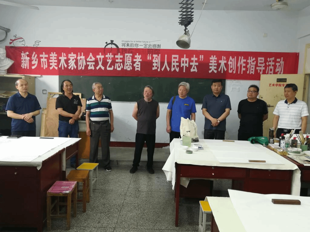 近日,“艺术名家进课堂”活动在艺术学院成功举办,由新乡市书法家协会主席刘森堂、新乡市美术家协会主席杨淼分别带队新乡市部分书画家应邀参加了活动。活动分书法和国画两部分分别在艺术学院展厅和美术专业教室举行。
