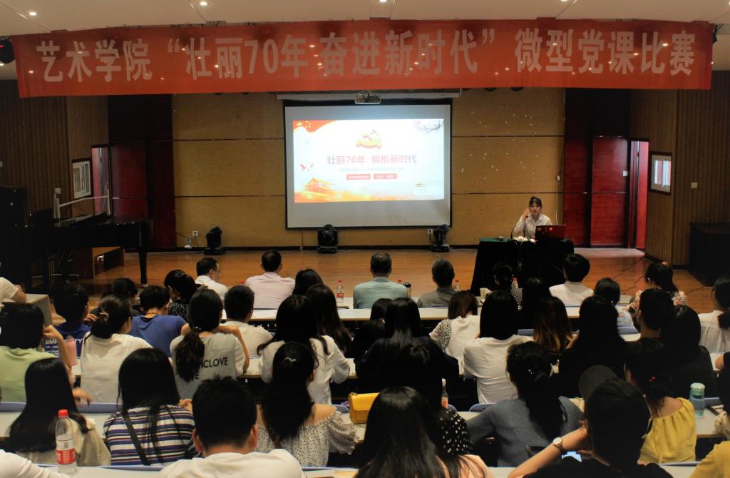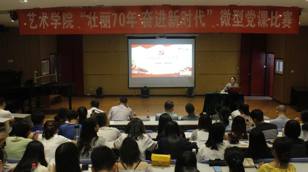 为庆祝新中国成立70周年,深入学习贯彻党的十九大精神和习近平新时代中国特色社会主义思想,丰富党员学习形式,6月6日下午,艺术学院在11号楼音乐厅举办以“壮丽70年,奋斗新时代”为主题的微党课比赛。校正处级组织员何雅璞,党校办公室主任叶晖,校党委宣传部副部长方强,校团委副书记袁博,校党委学工部副部长郭超杰出席比赛并担任评委,同时担任评委的还有艺术学院党委书记张玉新,院长张新词。本次微型党课比赛由艺术学院党委副书记徐小玉主持。艺术学院党政领导、师生党员共计100余人参加了本次活动。