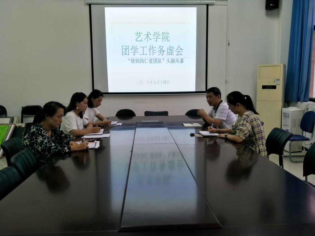 为在新学期扎实做好团学工作,理顺工作思路,9月14日,艺术学院在11号楼208会议室召开团学工作务虚会,艺术学院党委书记张玉新、党委副书记徐小玉和全体辅导员参加了会议。