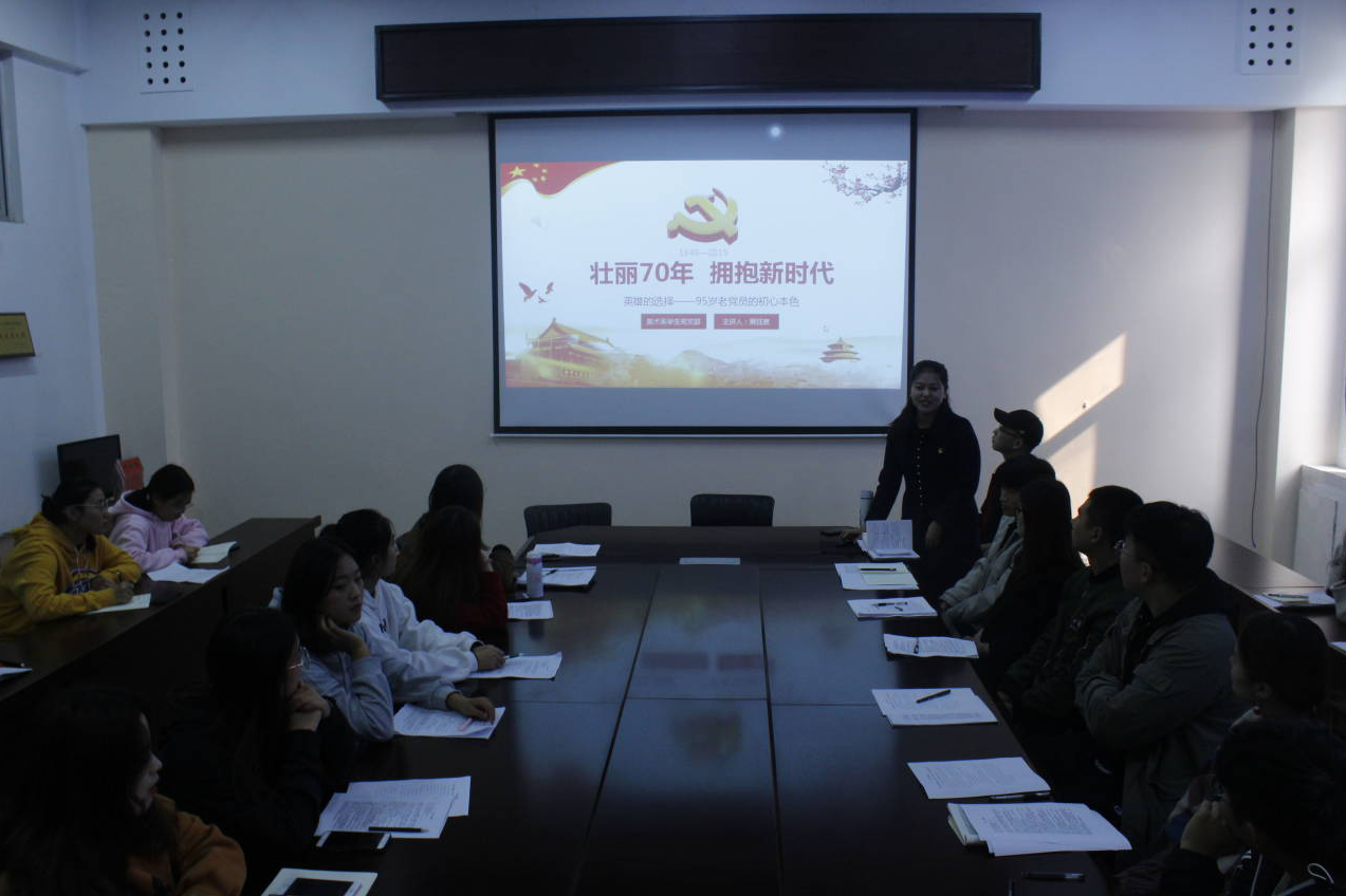 11月8日,艺术学院在11208开展第30期“解读红色经典”特色党课,此次党课由学生党员黄钰宸主讲,艺术学院学生党员40人参加了此次活动。