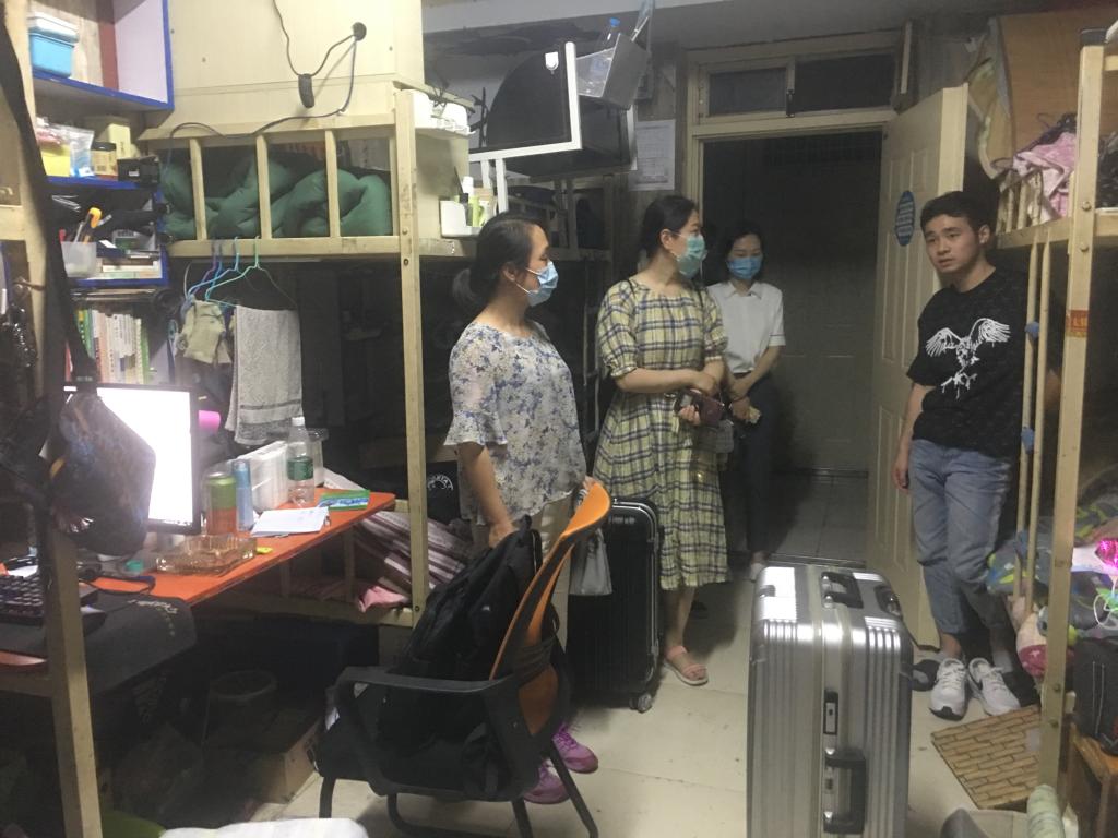 在毕业生返校当天,艺术学院党委书记张玉新、院长张新词、党委副书记徐小玉、团委书记刘凤、团委副书记陈晓华、辅导员张腾玮现场指导学院毕业生返校工作、与返校学生进行亲切交流、仔细询问返校过程,并叮嘱同学们科学做好个人防护,自觉遵守校园防控秩序。晚上,学院领导深入宿舍走访,了解学生毕业手续办理及就业情况,现场解答学生关于档案整理、就业、升学等问题,并再三叮嘱学生要做好宿舍提前通风,不允许串宿舍、打牌、喝酒聚集,做好每日体温早、中、晚体温上报,有发热等异常情况及时上报。