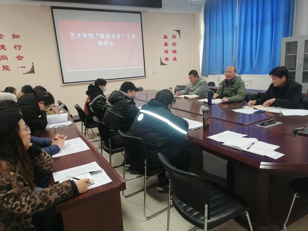 2月8日下午,艺术学院在11号楼208会议室召开“荐读书目”工作推进会。艺术学院院长张新词、副院长张思镜、雷保杰及各专业建设责任人参加了会议。与会人员就“荐读书目”工作自2018年开展以来的工作进展与成效进行了分析与研讨。