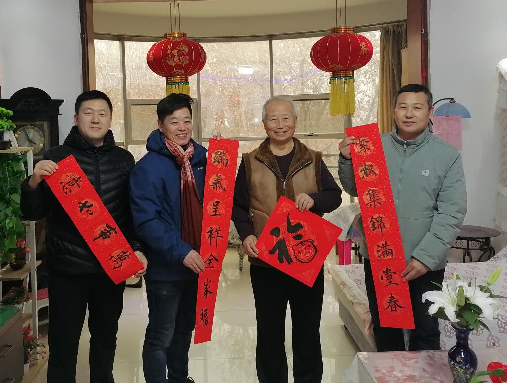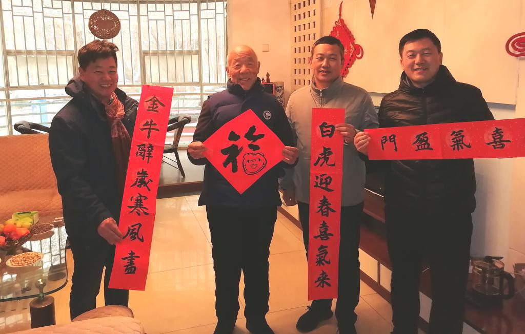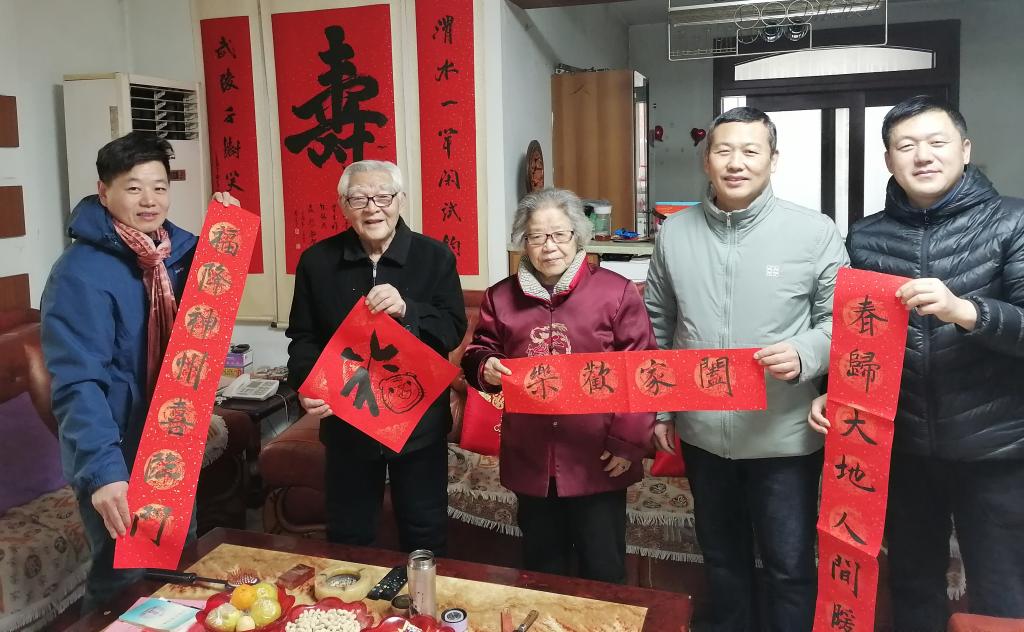 在离退休管理处党总支书记马新岭、副处长马根喜引领下,几位老师将精心撰写的春联和美好祝福,送给为学校事业呕心沥血的老一代教师,感谢他们的无私奉献,聆听了老教师的谆谆教诲。