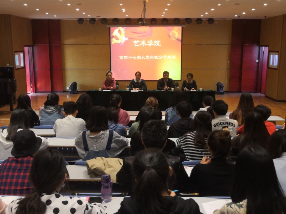 为加强大学生入党积极分子的党性意识,进一步提高大学生入党积极分子的基本理论素养,把好发展党员入口关。10月10日,艺术学院在11号楼合一音乐厅举办第四十七期入党积极分子培训开班典礼,艺术学院党委书记张玉新、党委副书记徐小玉、团委书记刘凤、正科级辅导员左玉含及艺术学院第四十七期入党积极分子近60人参加了本次典礼。