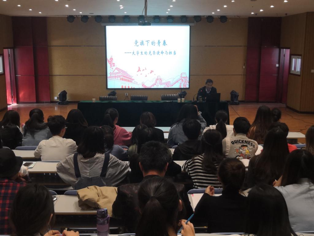 典礼由刘凤老师主持,激昂雄壮的国歌后,左玉含老师宣读了党课培训的内容安排和纪律要求,徐小玉老师向同学们提出了几点希望和要求:一要树立坚定信念,端正入党动机;二要严格遵守学习纪律,顺利通过党课考试;三要学以致用,深入理解党员标准。开班典礼结束后,张玉新书记开始了党课培训的第一课《党旗下的青春》,张书记从“什么是理想、什么是信念”入手,引导大学生认清广大青年肩负的实现中华民族伟大复兴、全面建成小康社会的历史重任,给大学生指出了实现历史使命的实践要求,使同学们认识到加入中国共产党是当代大学生实现历史使命和人生追求的正确选择。最后张书记还列出了几种错误的入党思想,要求大家端正入党动机,明确努力方向。张书记的讲座,有理有据,生动活泼,紧贴大学生的学习和生活实际,为他们尽快加入中国共产党给予了更为明确的指导。