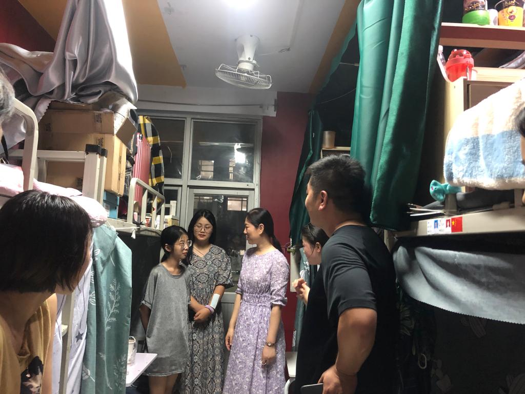 晚上,党委副书记徐小玉与团委副书记陈晓华召开了19级班委开学工作主题会议,随后前往学生宿舍探望返校学生,与同学们谈心聊天,叮嘱大家疫情防控思想不能放松,尽快调整好个人状态,整理好宿舍和教室,投入到紧张的校园学习生活。