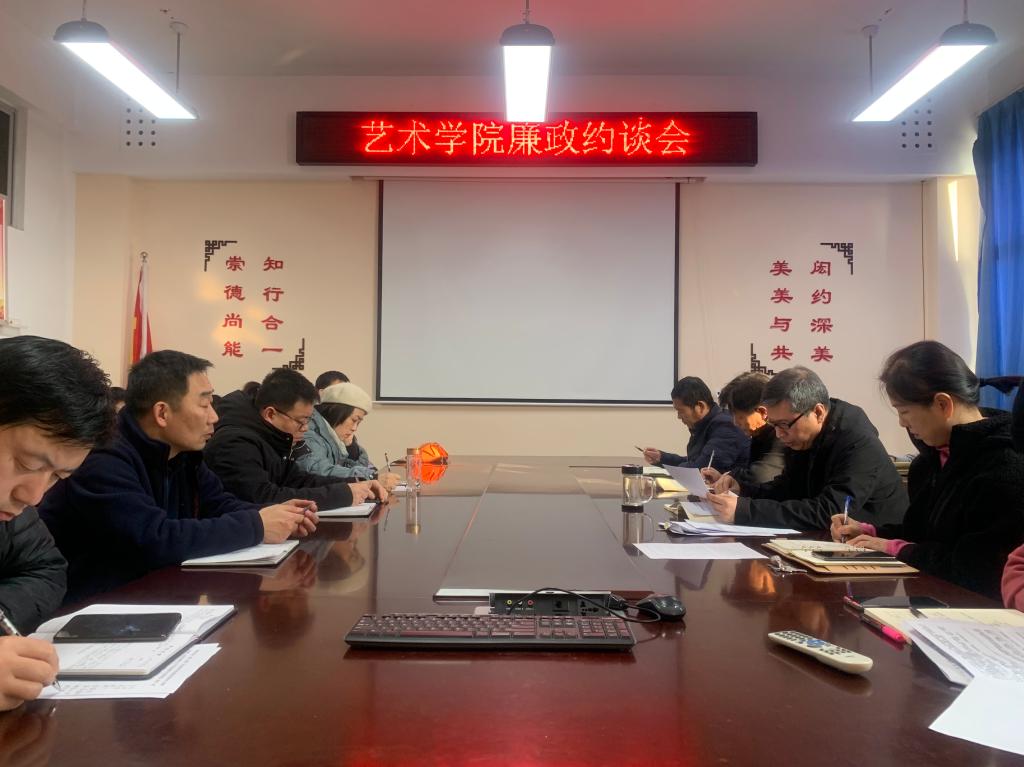 12月9日,艺术学院党委在11号楼208会议室开展2021年廉政约谈工作,学院全体处级干部、科级干部及党支部书记参加了会议。会议由学院党委书记张玉新主持。