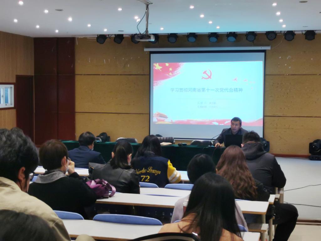 11月4日下午,艺术学院党委在11#音乐厅召开专题学习会,传达学习贯彻河南省第十一次党代会精神。会议由院党委书记张玉新主持,学院全体教工参加。