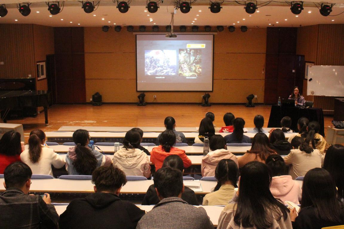 11月2日晚,艺术学院教师郝好燕在艺术学院音乐厅作了题为“光色交响曲——走进印象主义绘画”的艺术文化讲座。艺术学院部分教师及服装学院师生200余人聆听了此次讲座,讲座由艺术学院公共艺术教研室主任游德存主持。
