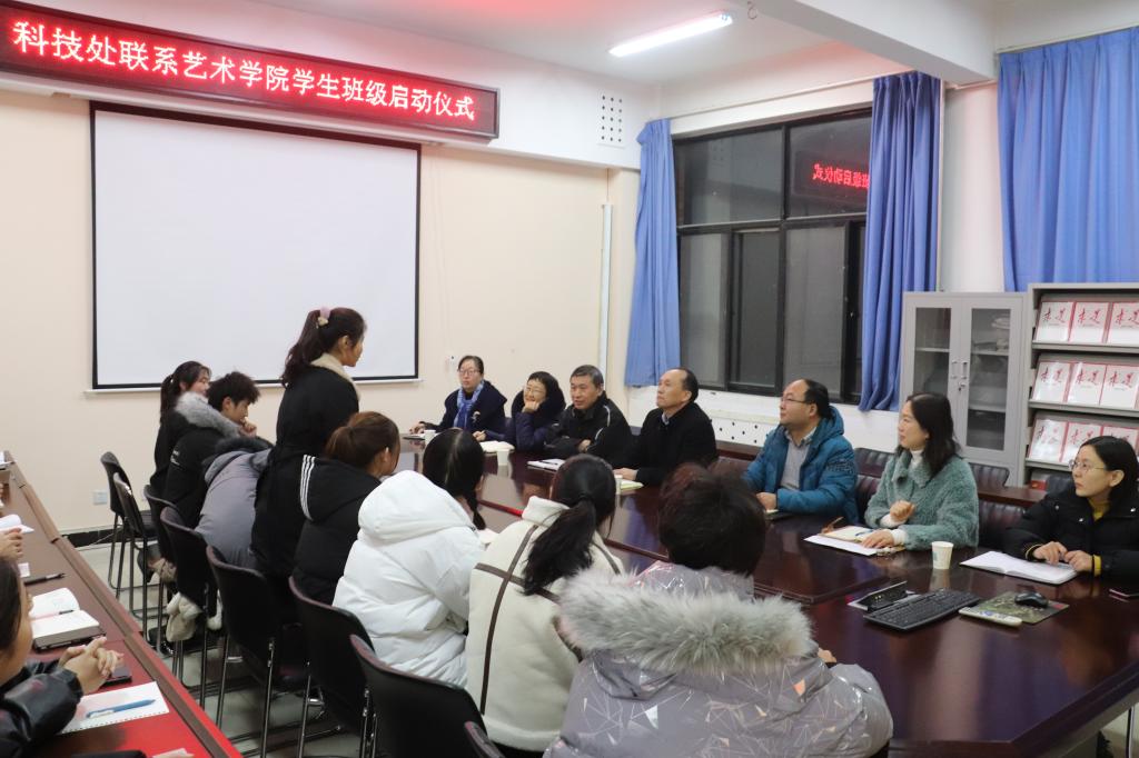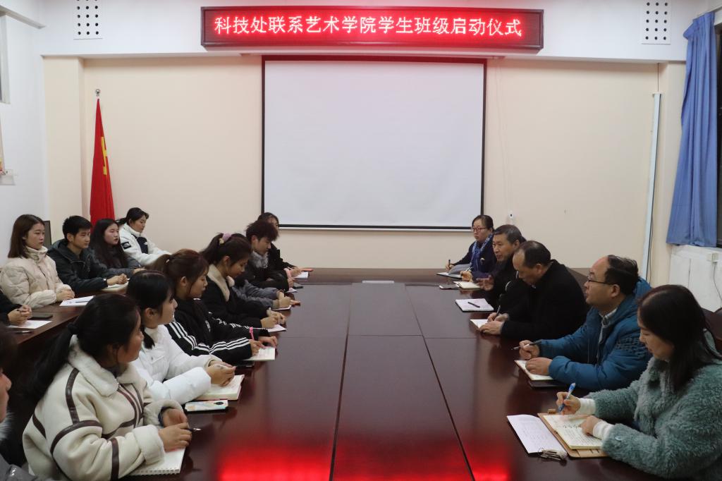 为进一步加强领导干部与学生班级的联系,推进学风建设,12月10日,科技处机关干部联系艺术学院学生班级仪式在11208会议室举行。科技处处长马汉军,副处长张雅凌、刘润强、毕昱文,艺术学院党委书记张玉新、副书记徐小玉、20级辅导员张腾玮,以及联点班级的16名班委参加了启动仪式。