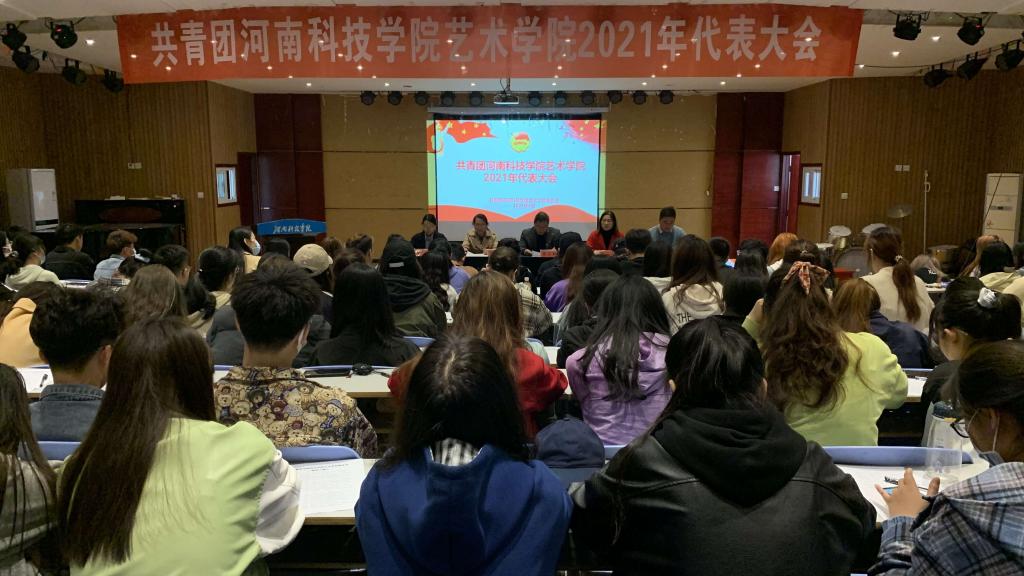 团委书记刘凤以《坚定理想信念 勇担时代责任 为建设教学研究型大学奉献青春力量》为主题作了工作报告。党委副书记徐小玉宣读了《共青团河南科技学院艺术学院团员代表大会选举办法》(草案)。辅导员杨丹宣读了《共青团河南科技学院艺术学院委员会委员候选人名单》、《共青团河南科技学院第十四次代表大会艺术学院代表候选人名单》。在总监票人杨丹的主持下,团员代表们本着公平、公正、民主的原则,以差额选举的方式成功选举出共青团河南科技学院艺术学院委员会委员9名、共青团河南科技学院第十四次代表大会艺术学院代表13名。