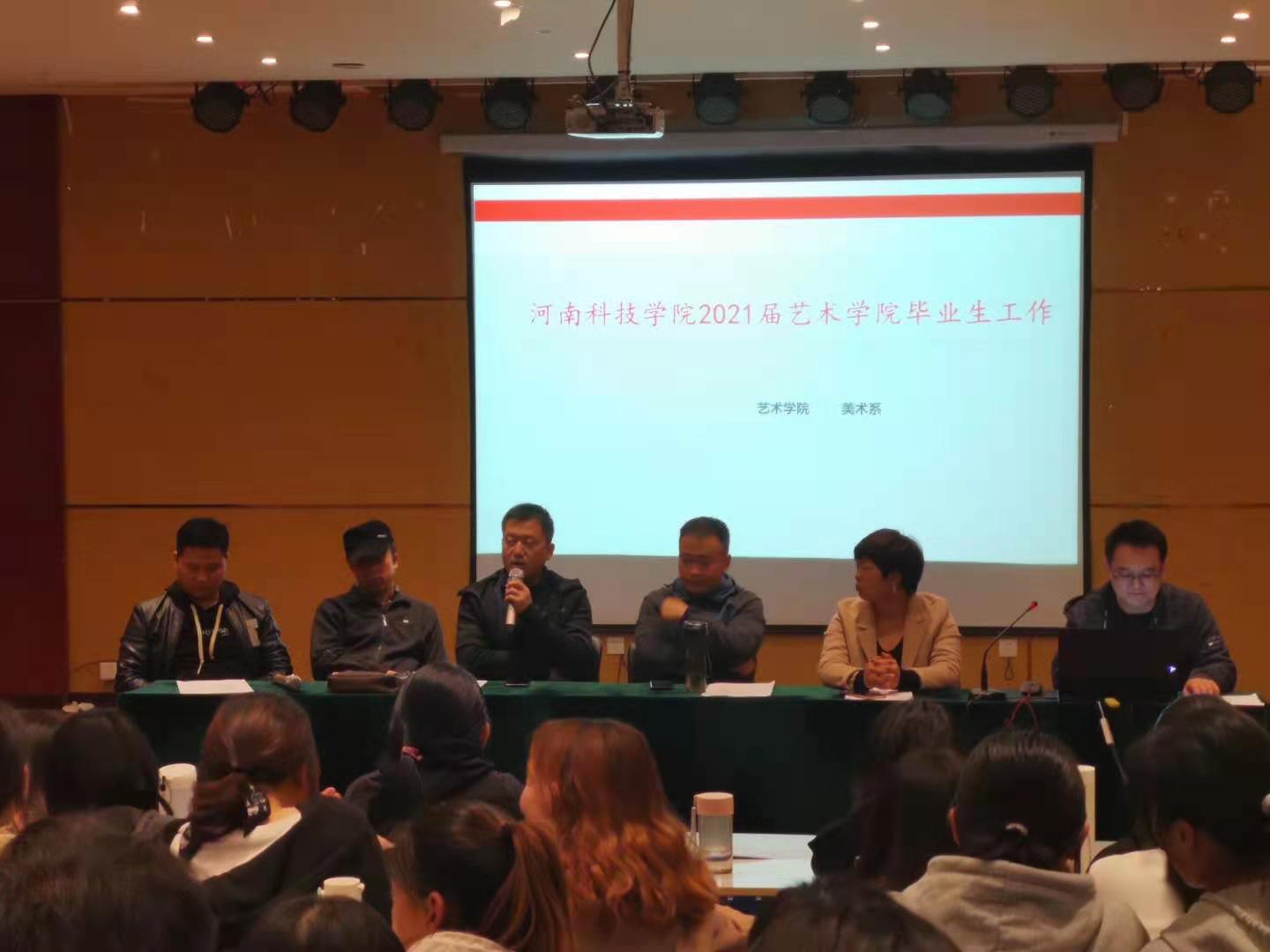 会上,学院团委书记刘凤分析了疫情影响下2021届毕业生就业形势,引导毕业生认清形势,转变观念,做好规划,准确定位,全面提高自身专业素质和心理素质,为美好未来做好积累;详细讲解了就业协议书填写、报到证办理和档案转接等具体事宜。她叮嘱毕业生在大学的最后时光里要遵守校规校纪、保持信息畅通、确保人身财产安全,党员干部要切实发挥模范带头作用,站好最后一班岗。最后,刘老师对防网络电信诈骗、心理健康、网络舆情、疫情防控等重点问题进行了强调。近期毕业生进入实习阶段,艺术学院各专业也围绕实习、就业召开了专题会议。