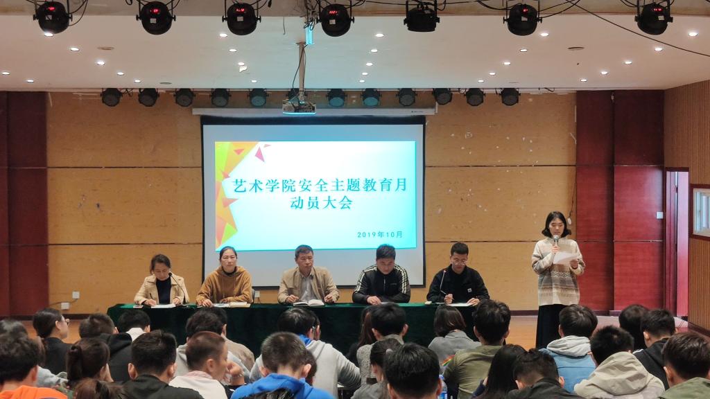 为了普及校园安全知识,增强学生安全意识,为同学们敲响安全教育的警钟,10月23日,艺术学院在11#一楼音乐厅召开了安全主题教育月动员大会,艺术学院党委书记张玉新、党委副书记徐小玉、团委书记刘凤、团委副书记陈晓华及团委学生会主要成员、各年级班委、宿舍长共计300余人参加了大会。