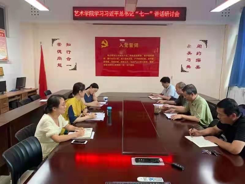 7月6日,艺术学院党委在11208会议室召开学习习近平总书记“七一”讲话精神研讨会,艺术学院全体处级干部和党委委员参加了会议。