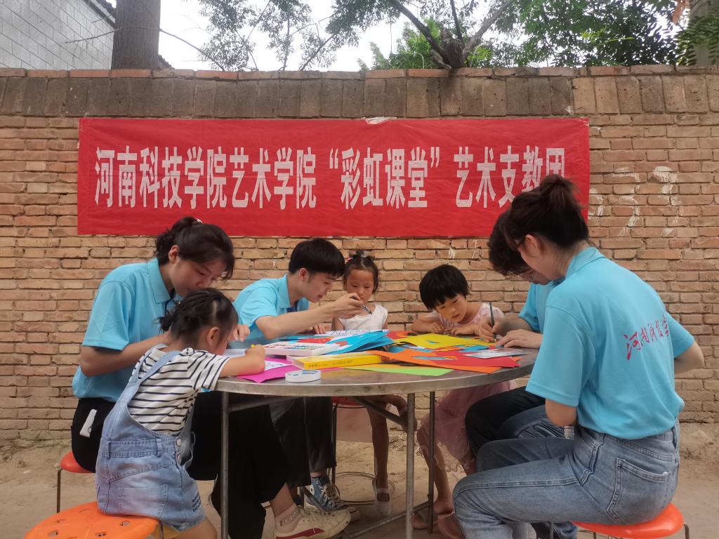 7月10日,艺术学院“彩虹课堂”艺术支教团赴封丘县闫庄村,开展“党史绘画宣传教育”主题社会实践活动,团队指导教师、团委书记刘凤,辅导员杨丹及十余名学生实践队员参与了本次活动。