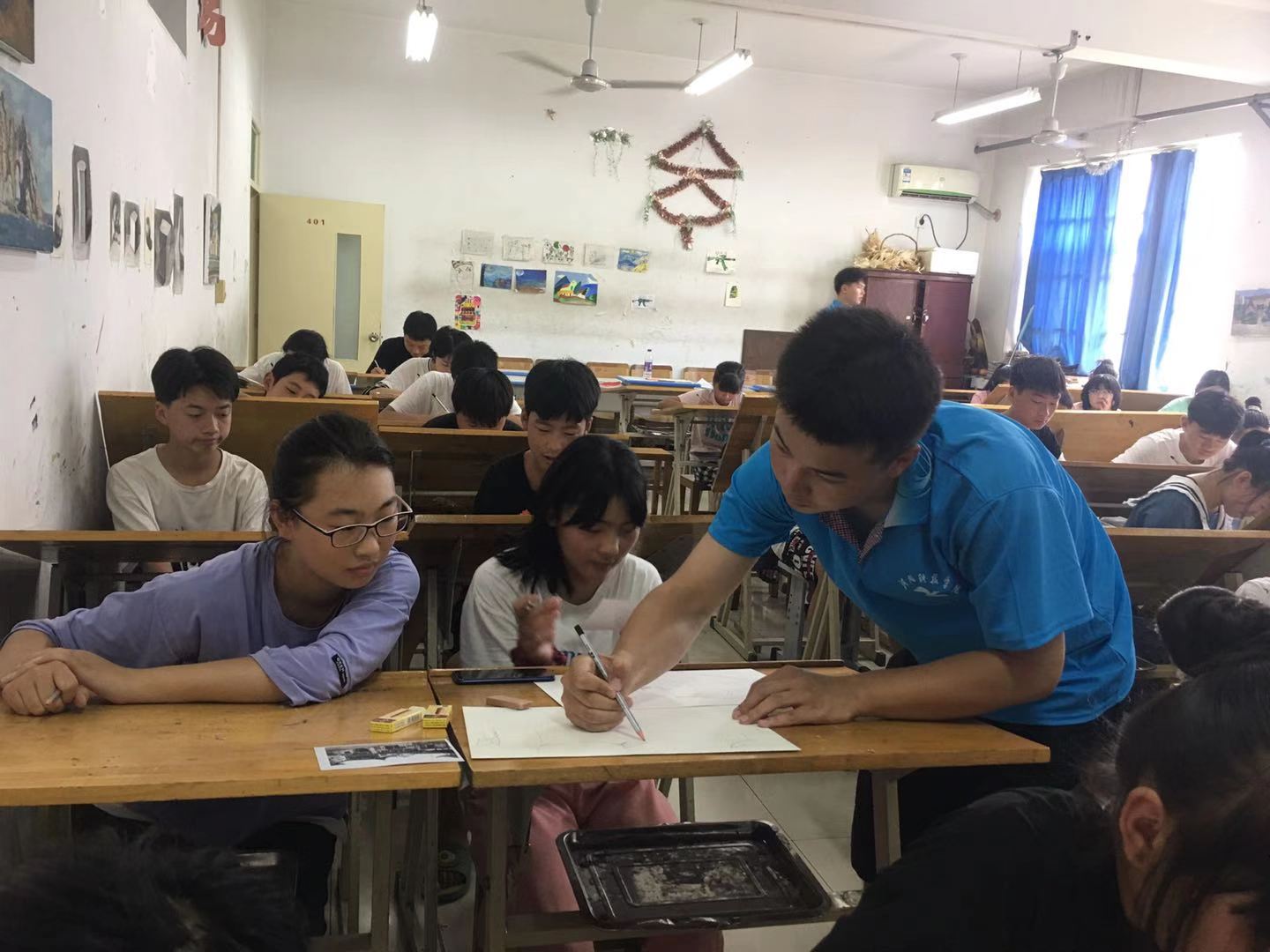 7月28日晚,2000余名卫辉受灾群众转移至学校,在得悉这个消息后,艺术学院高度重视,立即号召学院广大党员、师生志愿者行动起来,成立艺术学院“彩虹课堂”艺术支教团,为安置点儿童教授美术、书法、音乐等艺术课程,丰富孩子们的精神生活,提高安置点儿童的艺术修养和审美情趣。