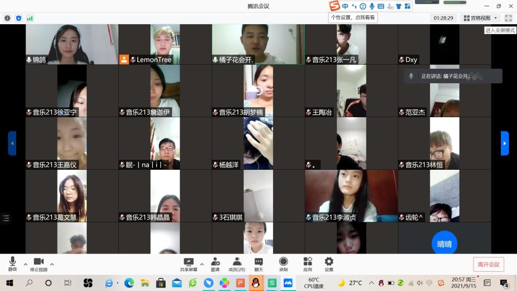 自9月12日线上报到之后,各新生代理班主任就开始积极工作,帮助新生尽快适应网课的学习。各班报到完毕后,9月13日晚上19:30—21:30在QQ、钉钉、腾讯会议等网络平台及时召开了各班的新生视频见面会,同学们通过自我介绍、表演才艺等方式尽快熟悉起来,为大学生活开个好头,也为后期的线上课程的顺利开展夯实了基础。同时,各个专业的代班也就学习规划、专业前景、生活技巧等方面与21级新生分享交流,为新生们拨开大学学习生活的第一层迷雾。