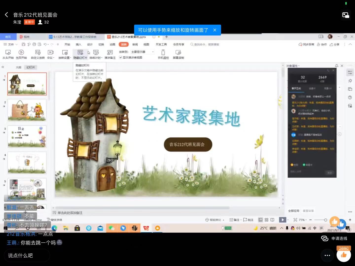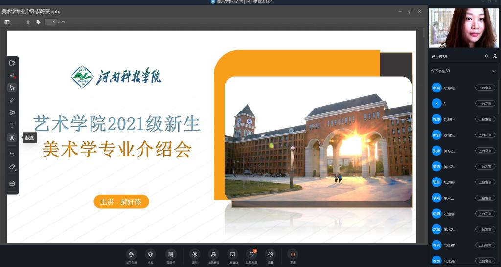 9月17日晚上19:30—20:00,由艺术学院党委副书记徐小玉在线上开展2021级新生家长课堂,大学并非是孩子们的终点,而是一个全新的起点,不光需要孩子们走稳大学的第一步,也需要家长积极配合,共同用爱去教育自己的孩子,与学校老师们共同培养一个未来的栋梁之材。