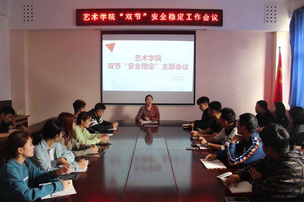 为切实做好“双节”期间安全稳定工作,9月30日中午,艺术学院在11208会议室召开安全稳定专题会议,学习传达校新冠肺炎疫情防控工作领导小组办公室最新文件精神,就“双节”期间学校安全稳定工作做进一步的强调与部署。艺术学院党委副书记徐小玉、团委书记刘凤、团委副书记陈晓华分别给17-19级班委召开了年级安全稳定主题会议。