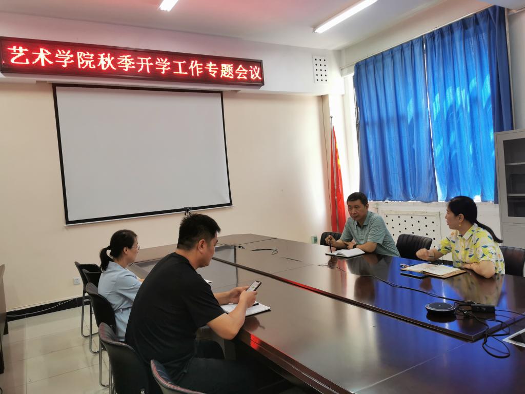 为深入学习贯彻学校相关文件精神,积极做好疫情防控形势下秋季开学各项准备工作,8月27日,艺术学院在11号楼208会议室召开艺术学院秋季开学工作专题会议,学院党委书记张玉新、副书记徐小玉、团委书记刘凤和团委副书记陈晓华参加了会议。
