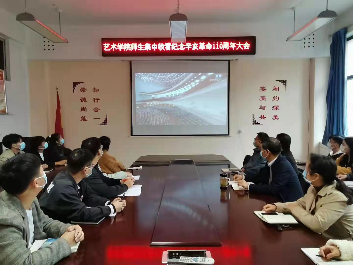 10月9日上午,纪念辛亥革命110周年大会在北京人民大会堂隆重举行。中共中央总书记、国家主席、中央军委主席习近平出席大会并发表重要讲话。艺术学院部分师生在11楼208室观看大会盛况,共同庆祝辛亥革命110周年。