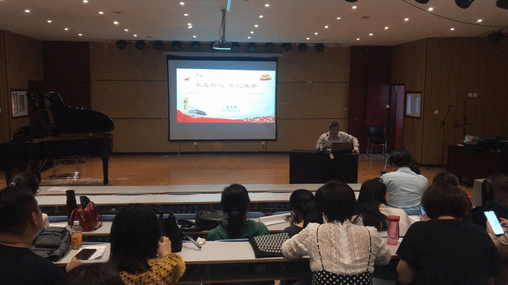 按照学院“不忘初心、牢记使命”主题教育工作计划,9月27日,艺术学院在11合一音乐厅召开“不忘初心、牢记使命”书记专题党课,艺术学院教工党员共50余人参加了会议。
