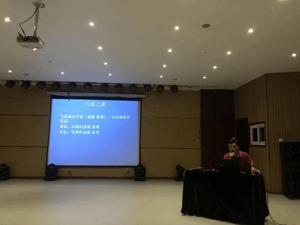 此次学术报告的题目是《写意之美--谈中国画的生命精神》。报告会由艺术学院副院长雷保杰主持。