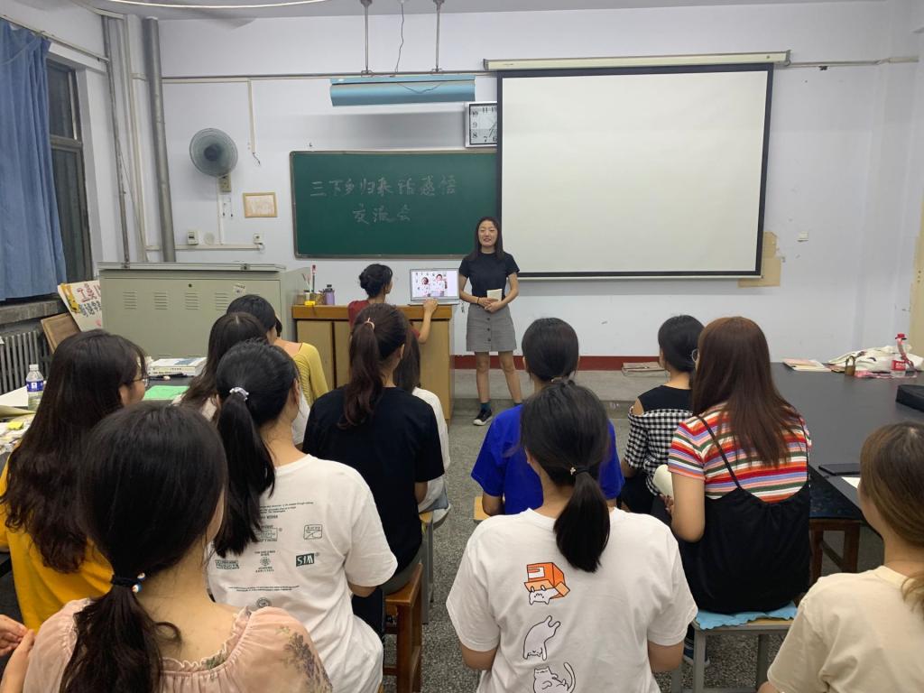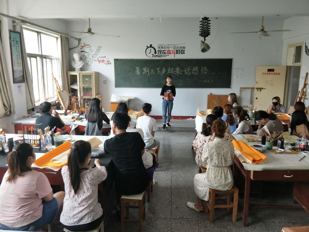为深入总结2019年暑期“三下乡”活动成果,分享社会实践活动中的感悟与收获,9月1—8日,艺术学院2017、2018级各团支部召开了“暑期三下乡 归来话感悟”主题班会,班会由各团支部书记主持,艺术学院团委、学生会主席团成员列席。