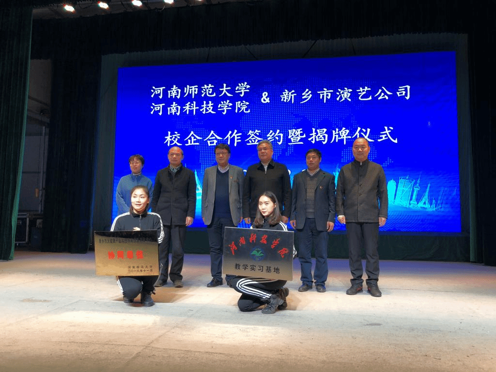 12月4日上午,“河南科技学院艺术学院与新乡市演艺公司校企合作签约暨揭牌仪式”在新乡市演艺公司梨花轩小剧场举行。中共新乡市委宣传部常务副部长杨军,市文广新局副局长别富喜,演艺公司董事长张新军,新乡市大健康产业科技协同创新创业中心副主任田小勇,河南科技学院艺术学院院长张新词、河南科技学院艺术学院器乐与舞蹈教研室副主任何甲麒等相关领导出席活动,河南戏剧、新乡日报、新乡广播电视台等多家新闻媒体前来报道,全场共500余人参与活动。