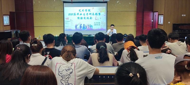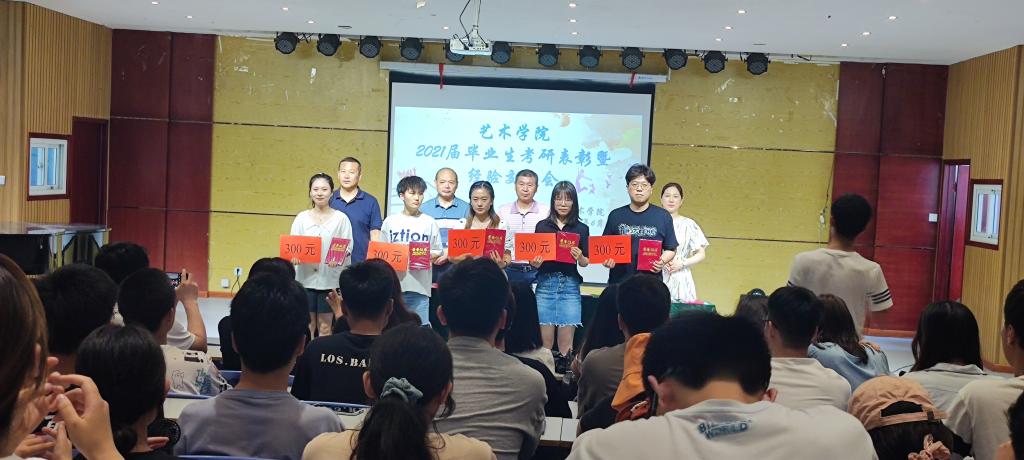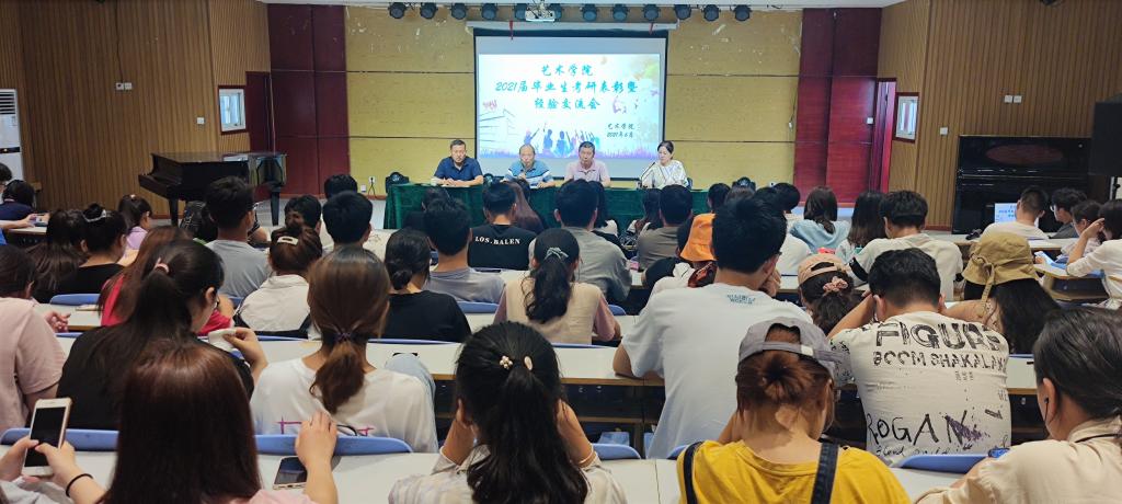 为进一步调动同学们的考研积极性,切实发挥优秀毕业生的榜样作用,6月15日,艺术学院在十一合一举办了2021届毕业生考研表彰暨经验交流大会,艺术学院党委书记张玉新、院长张新词、党委副书记徐小玉、副院长雷保杰,以及学院各专业负责人、辅导员和2021届考取研究生的学生代表及低年级有考研意愿的学生近150人参加了本次大会。