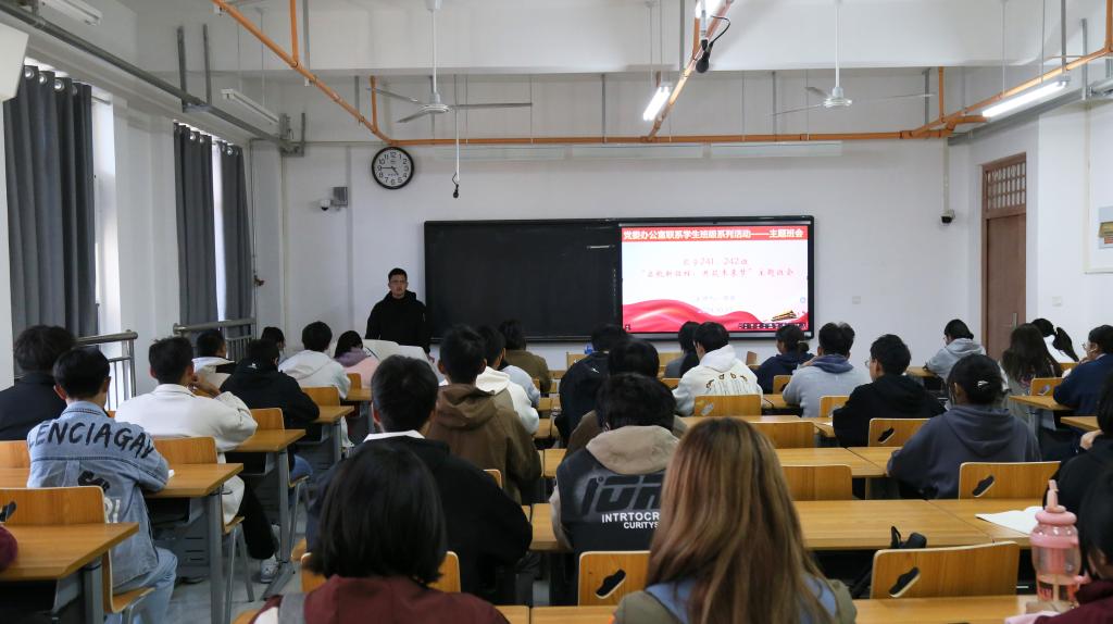 活动过程中,班会主讲人从“知识如海洋,唯有学习方能扬帆起航”“积极转变自身角色,尽快适应新的学习和生活方式”“凡事预则立不预则废,做到有方向、有目标、有规划、有行动”三个方面具体展开。希望同学们把握好大一上学期关键时期,让勤奋学习成为青春远航的动力,让增长本领成为青春搏击的能量。树立专业自信,积极转变自身角色,学会自主学习、培养自学能力,同时兼顾专业知识、专业能力和综合素质提升之间的关系。克服惰性心理,主动走出舒适区,多尝试、多“试错”,做到有志、有识、有恒。秉持“崇德尚能、知行合一”的校训,把个人的发展融入中华民族伟大复兴新征程。