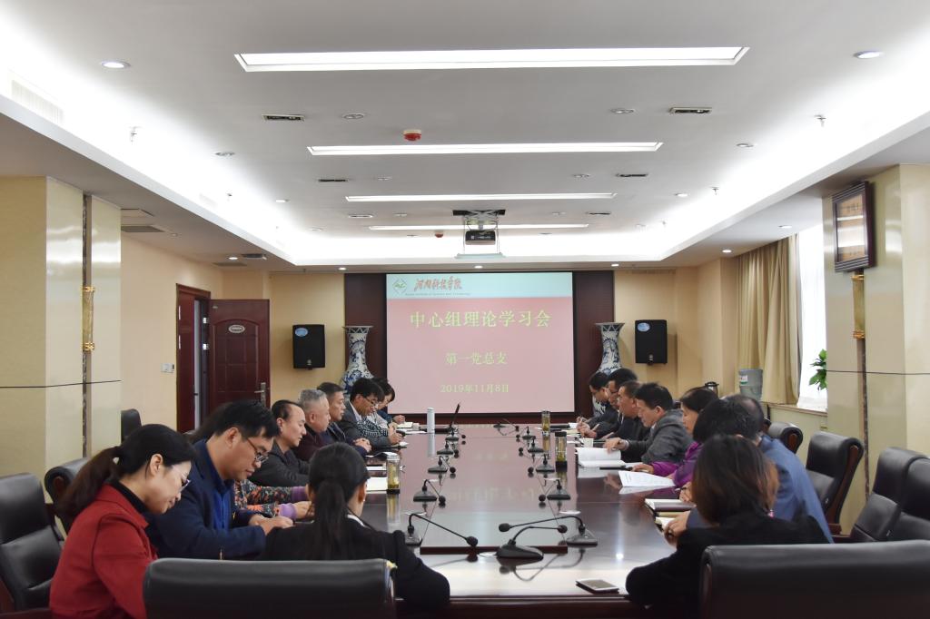 11月8日下午,第一党总支在新行政楼901召开中心组理论学习会,全体处级干部参加会议。会议由第一党总支书记刘持忠主持。