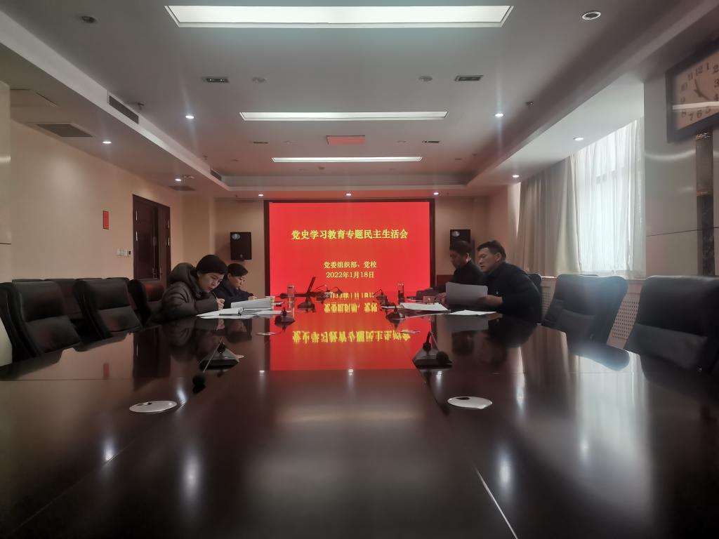 1月18日上午,党委组织部、党校在行政楼901会议室召开2021年度党史学习教育专题民主生活会。