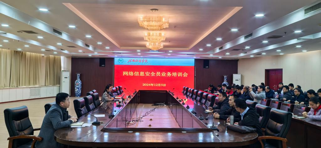 12月5日下午,我校在办公楼206会议室召开网络信息安全员培训会。党委宣传部、网络与信息化管理中心相关工作人员,各二级单位网络信息员60余人参加会议。会议由党委宣传部副部长任贯中主持。