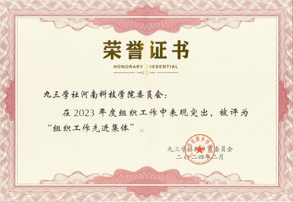 3月1日,九三学社新乡市第八届委员会召开第十次全体(扩大)会议,全面总结2023年工作成绩,安排部署2024年工作任务,表彰2023年先进集体和先进个人。我校九三学社委员会被授予“组织工作先进集体”“参政议政工作先进集体”荣誉称号。姚素梅、余昊、徐泮被评为“组织工作先进个人”,周凯、贺栋被评为“参政议政工作先进个人”,陈军被评为“社会服务工作先进个人”。