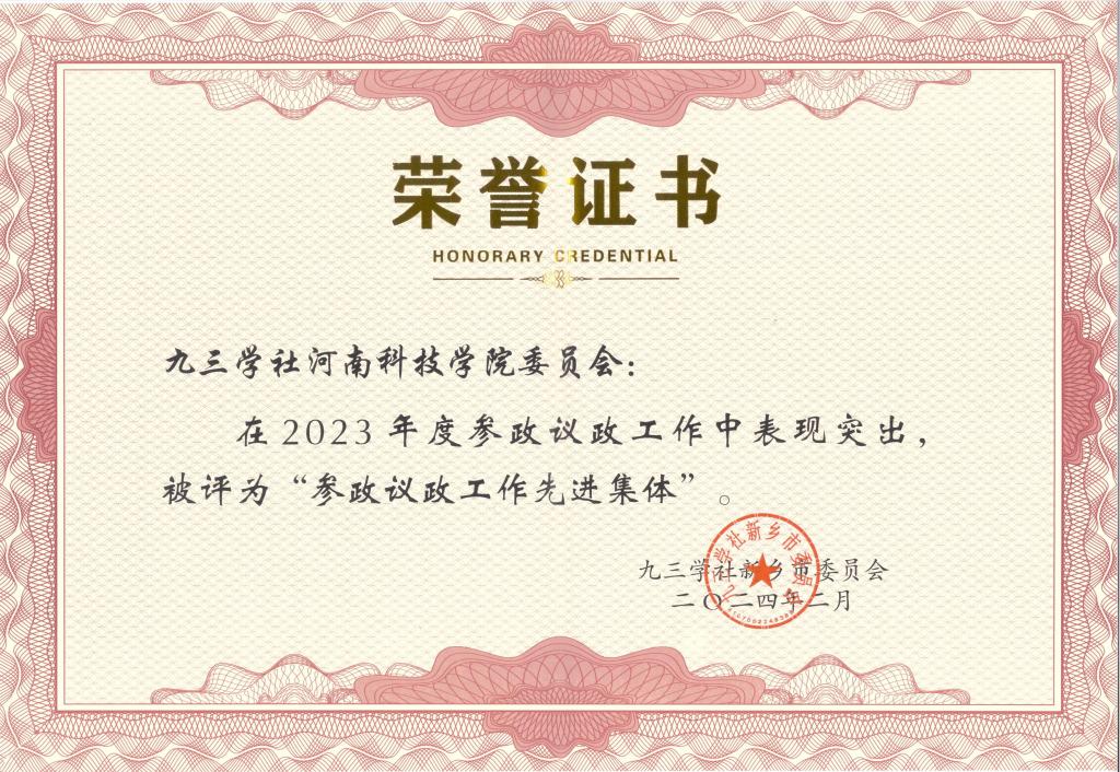 2023年,在校党委的正确领导下,校九三学社委员会大力弘扬“爱国、民主、科学”优良传统,认真开展主题教育,加强基层组织建设,紧紧围绕学校中心工作,积极服务国家战略和地方经济发展,建言资政成果丰硕,社务工作开创新局面,社会服务取得一定成绩,社会反响良好。
