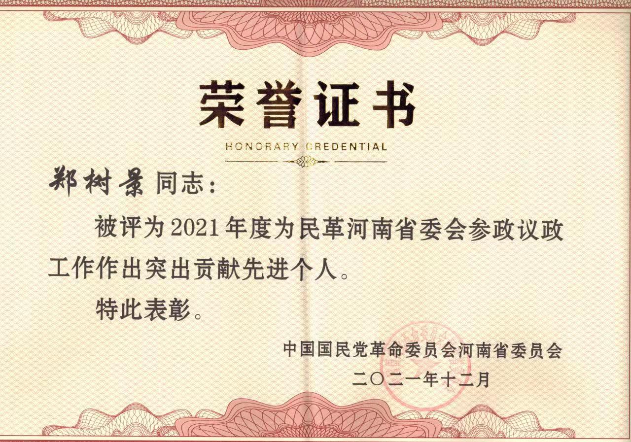 作为民主党派成员,郑树景注重发挥自身专长,积极参政议政、建言献策和开展民主监督,助推地方经济社会发展。她完成的《乡村振兴背景下传统村落的保护和活化利用》调研报告,被转化为民革河南省委提交政协第十二届河南省委会常务委员会第二十次会议的书面发言材料,同时还入选了“深化农村改革 推进乡村振兴——第四届莫干山会议”论文。